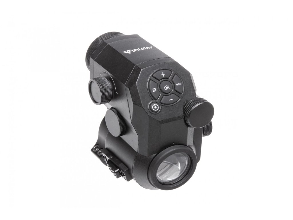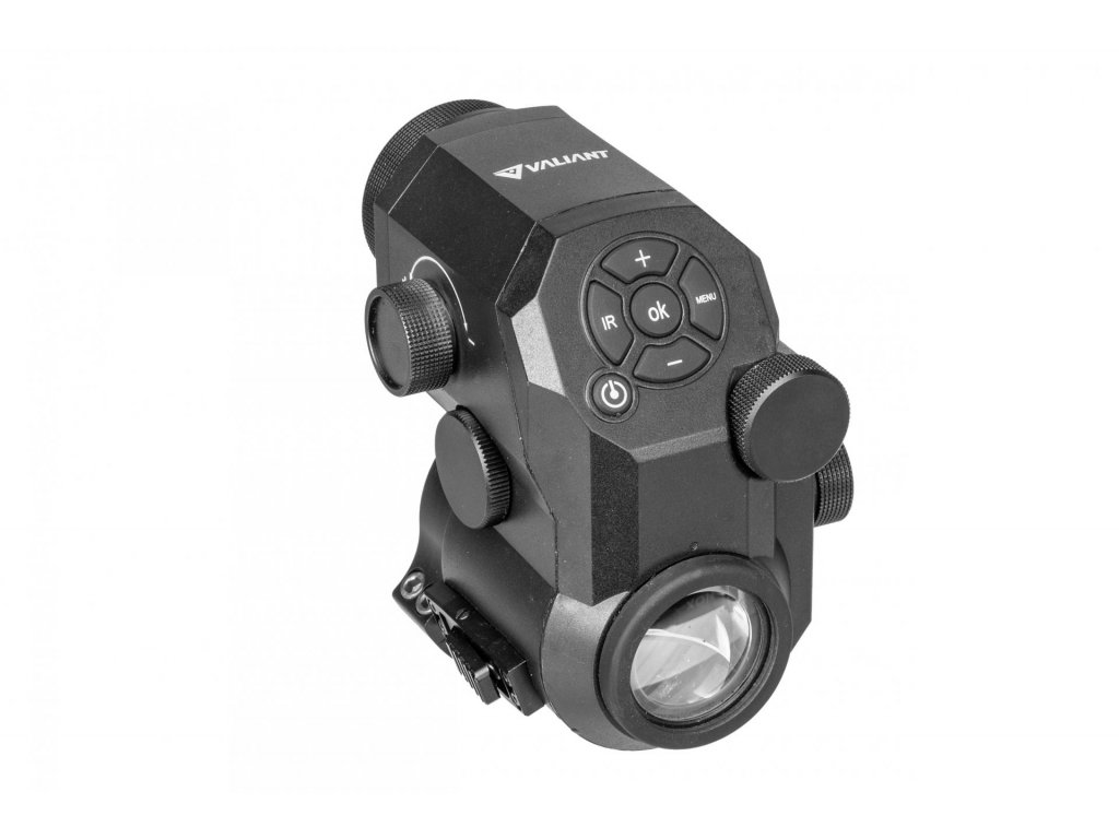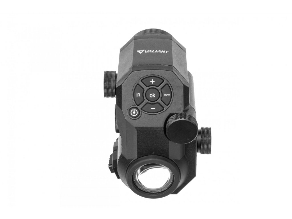 The Valiant display has a resolution of 640x640 px. It is powered by a Li-Ion 18650 battery that provides up to 8 hours of operation without illumination and approximately 4.5 hours with illumination. This battery is not included, it must be purchased. The Valiant also features a micro HDMI output.
