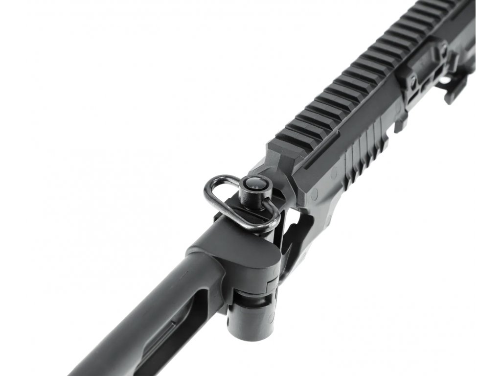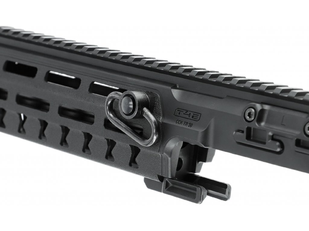 The long top Picatinny rail allows mounting of optical systems, and additional M-LOK slots ensure compatibility with standard accessories such as bipods, lasers and weapon lights. There are three Quick Detach (QD) interfaces for slings and other equipment.