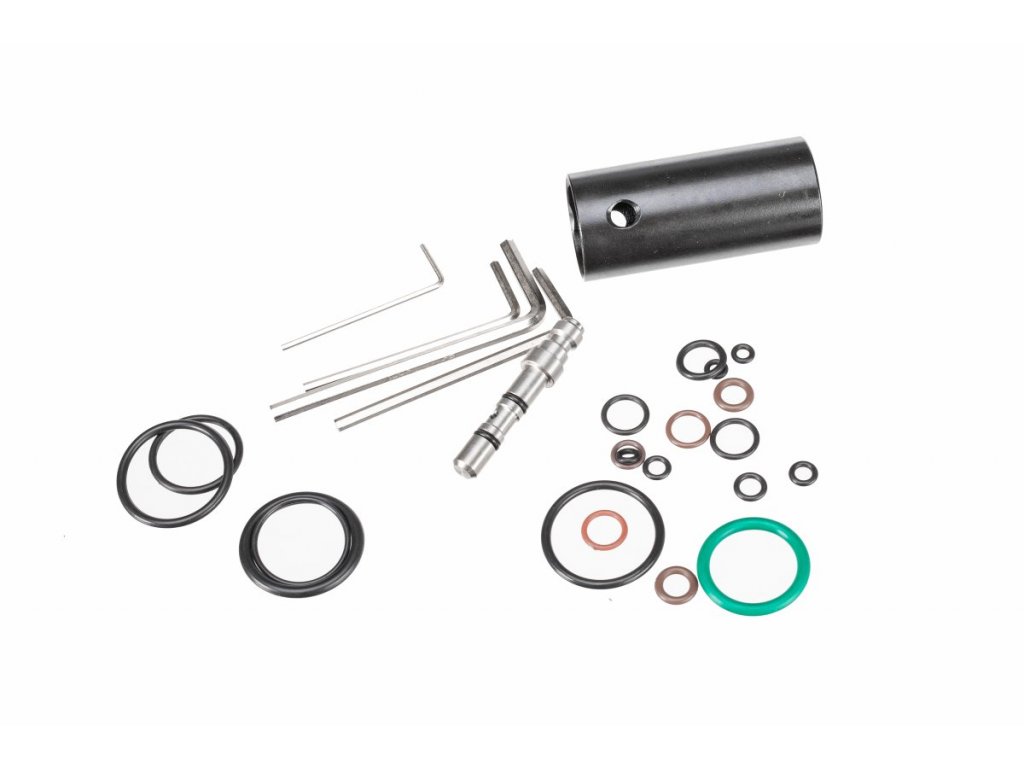 SPA Snowpeak T-Rex is powered by air, which is supplied from a proprietary reservoir, called a cartridge, with a capacity of 230cc. Air can be added to the cartridge using a special compressor, PCP pump or overflow from a cylinder. Included is a fill pin - QuickFill threadless valve terminating in a quick-connect connector.