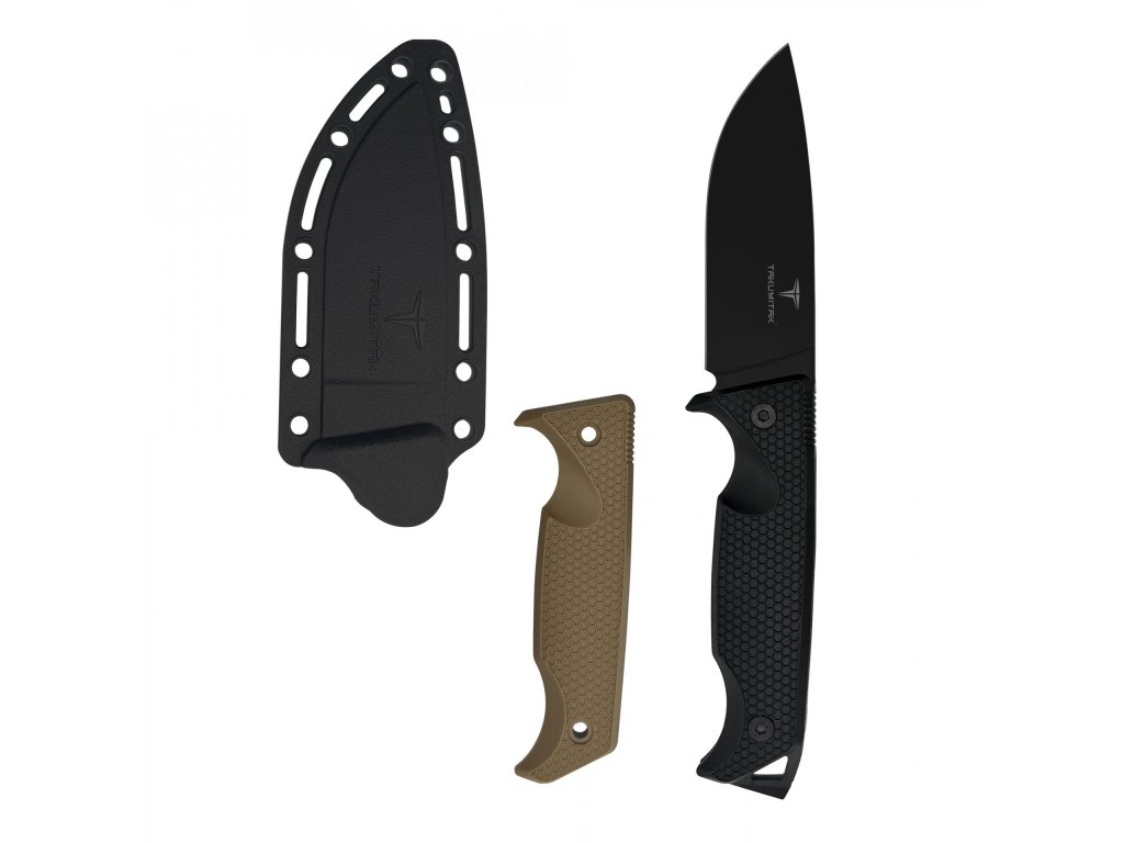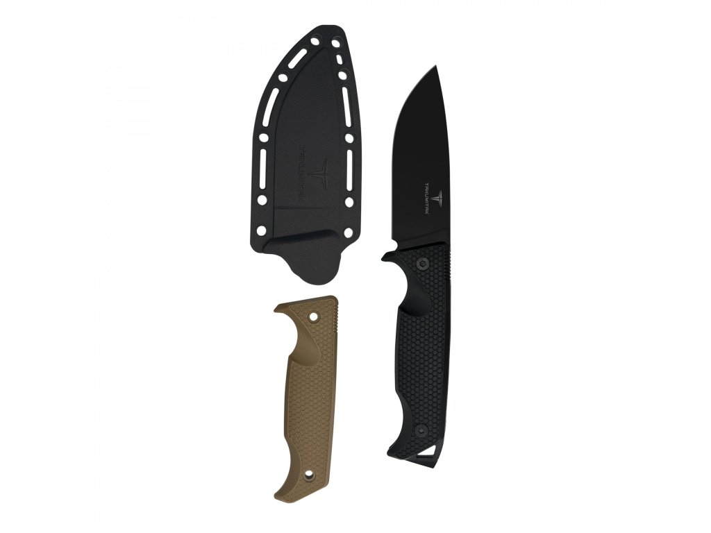 Tento nůž se pyšní odolnou, 3,92 mm silnou čepelí z černěné nerezové oceli 3Cr13, která je připravena na náročné úkoly. Užijte si flexibilitu díky dvěma dodávaným rukojetím (černá a písková), obě zhotoveným z vyztuženého nylonu FRN – materiálu známého svou lehkostí a extrémní odolností. Bezpečné nošení zajišťuje pouzdro ze stejného FRN materiálu, vybavené sponou na opasek a plně kompatibilní s MOLLE systémem pro snadnou integraci do vaší výbavy.