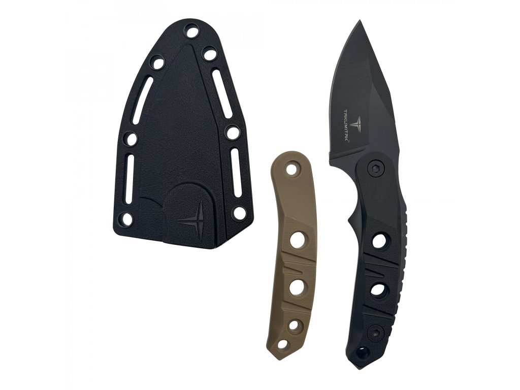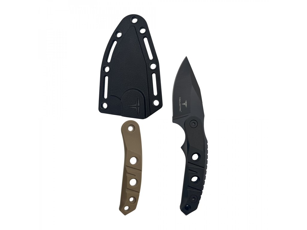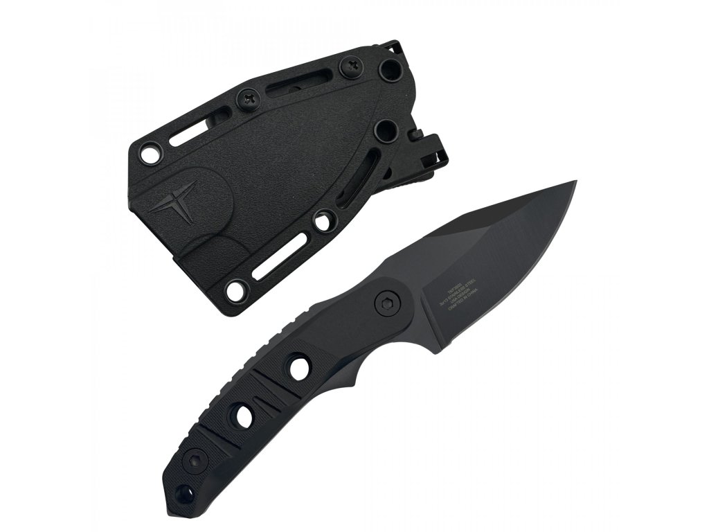 Tento nůž se pyšní odolnou, 3,32 mm silnou čepelí z černěné nerezové oceli 3Cr13, která je připravena na náročné úkoly. Užijte si flexibilitu díky dvěma dodávaným rukojetím (černá a písková), obě zhotoveným z vyztuženého nylonu FRN – materiálu známého svou lehkostí a extrémní odolností. Bezpečné nošení zajišťuje pouzdro ze stejného FRN materiálu, vybavené sponou na opasek a plně kompatibilní s MOLLE systémem pro snadnou integraci do vaší výbavy.