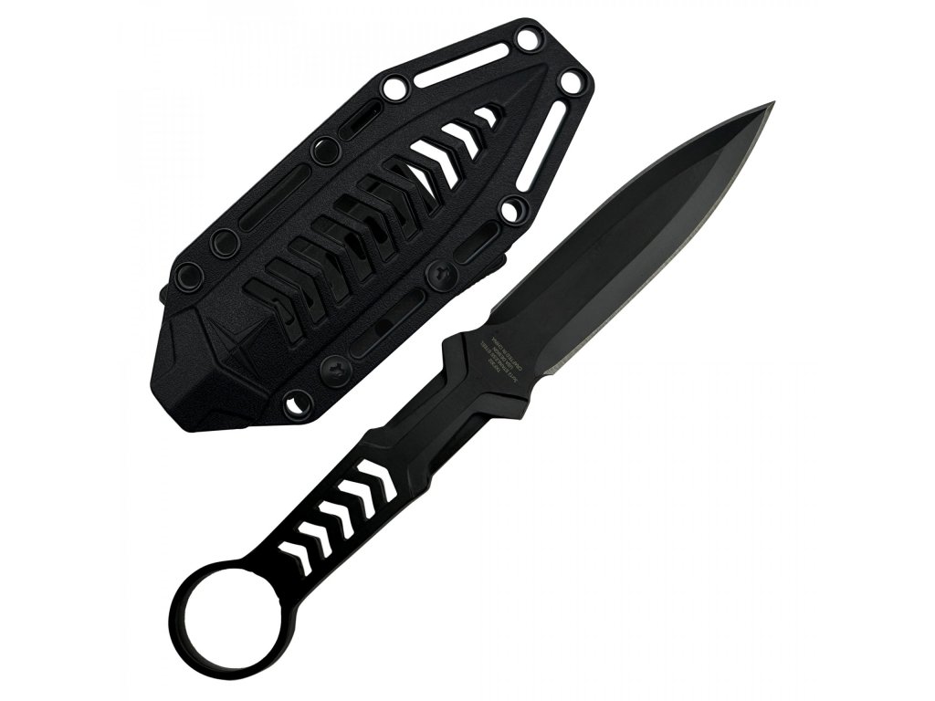 Tento nůž se pyšní odolnou, 3,9 mm silnou čepelí z černěné nerezové oceli 3Cr13, která je připravena na náročné úkoly. Bezpečné nošení zajišťuje pouzdro vybavené sponou na opasek a plně kompatibilní s MOLLE systémem pro snadnou integraci do vaší výbavy.