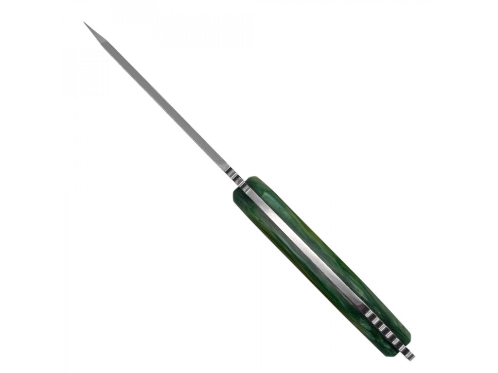 Rukojeť ze světélkující pryskyřice: Netradiční materiál rukojeti s příměsí světélkujícího prášku. Po nasvícení (např. sluncem nebo svítilnou) zůstane zářit ve tmě, což usnadňuje nalezení nože v noci. Navíc díky různobarevným tónům působí velmi atraktivním kouřovým dojmem.