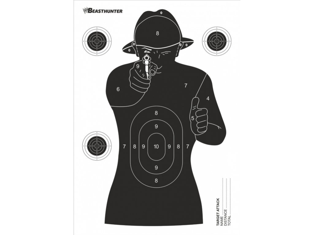 Papírové terče Beast Hunter Attack s profesionální siluetou do půli těla.