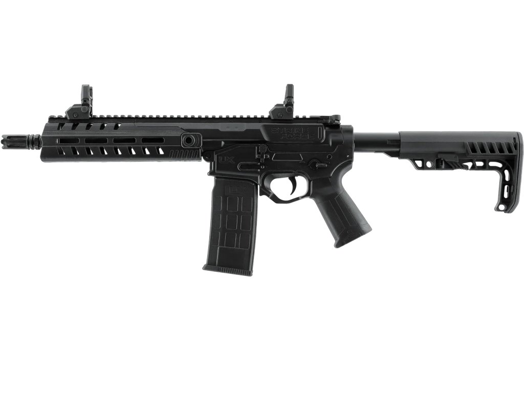 Replika samopalu Umarex Strike Force, inspirovaná typem AR, nabízí realistický vzhled, CO₂ pohon a střelbu ocelovými BB kuličkami ráže 4,5 mm. Díky kombinaci slitiny ZnAl a odolného polymeru je konstrukce pevná, ale zároveň lehká a snadno ovladatelná.